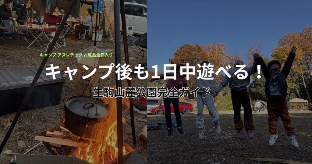【生駒山麓公園キャンプ場】子連れ大人数ファミリーキャンプ完全ガイド|アスレチック・お風呂・グラウンドまで一日中遊べる!