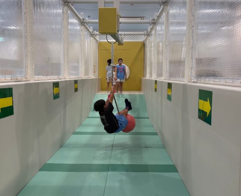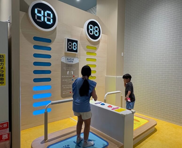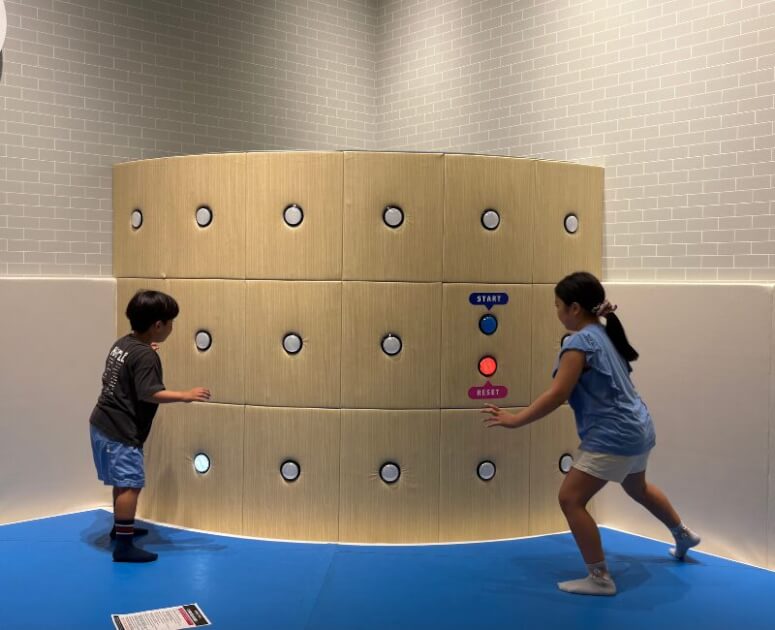 滑り台やターザンのようなアスレチック遊具だけでなく、床面に映し出された映像を追いかけて遊ぶゲームや、壁に光るパネルをタッチして得点を競うようなデジタル×体を動かす新感覚のあそびも楽しめます。