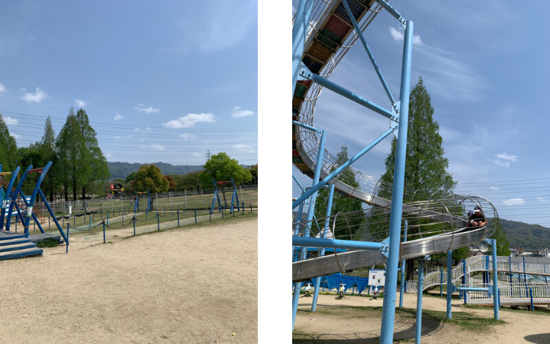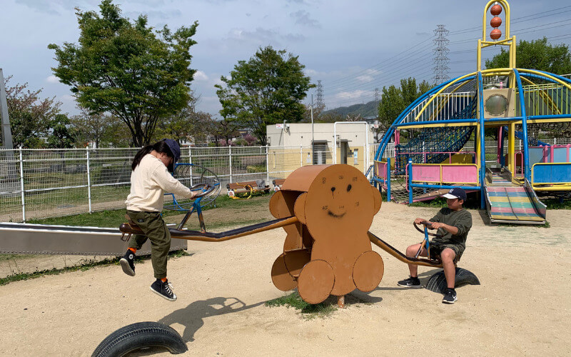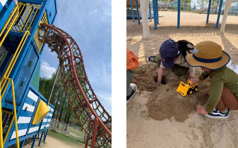 外には大きな遊具のある花園中央公園があるので、一日中遊べてしまします!
