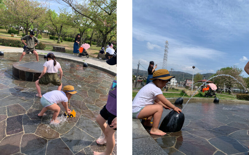 流れもあって、噴水もあって、子供たち大興奮間違いなし!