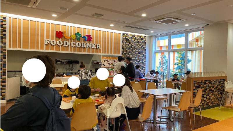 入り口から入ってすぐ右手にフードコーナーがあり、麺類、ハンバーグプレートやとんかつプレート、お子様プレートもありました。