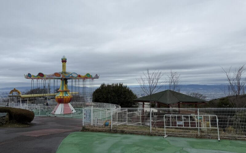 生駒山上遊園地は、奈良県と大阪府の境に位置する標高642mの生駒山山頂にある遊園地。なんと1929年(昭和4年)開園という歴史ある遊園地です。(まもなく100周年?!)