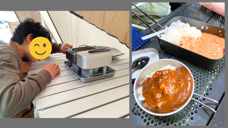 ルーはレトルトを使用しましたが、初めてメスティンでご飯を炊きました!(固形燃料使用)