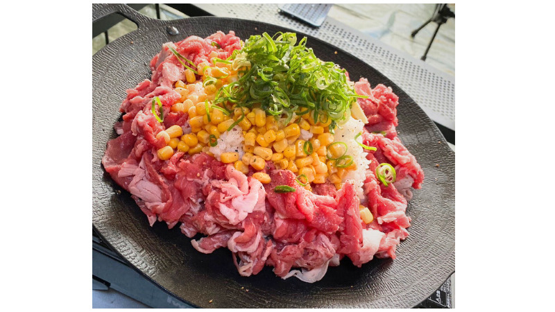 大手チェーン店の味を目指してみました!(米、肉、コーン、ネギ、を焼肉のタレで炒めるだけ)