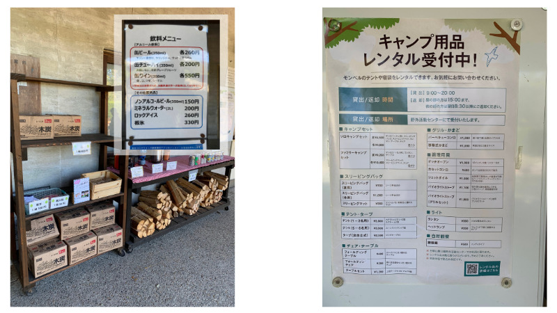 薪や炭、飲み物の販売あり!