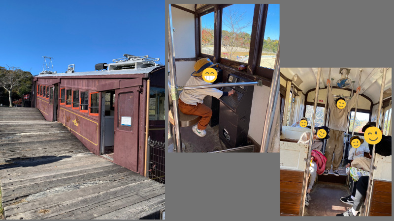 生駒ケーブルを走行していた車両の展示あり、リアルな車両に小さなキッズたちも大喜び!