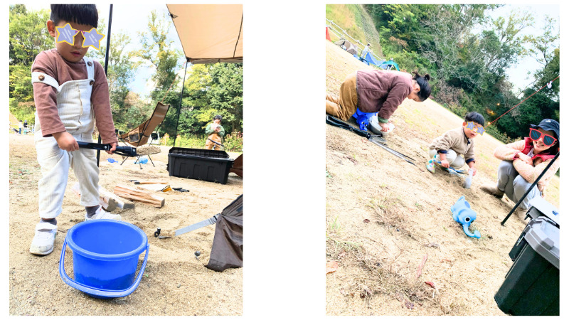 水を使うと子供は喜びますが、ドロドロになってしまうので注意です!