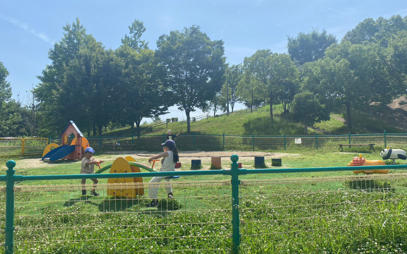 ・フェンス内のエリアで小さい子向けの遊具があります!
