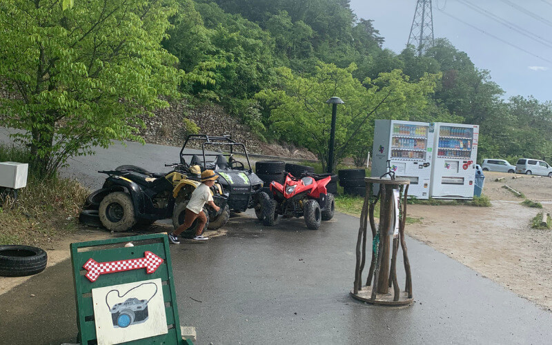 楽しみにしていたバギーは体験直前に上空に雷雲発生とのことで、運休になりました。残念!