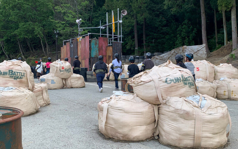 各自武器を持って、参戦します!貸し出し装備を着用し、安全対策バッチリ!