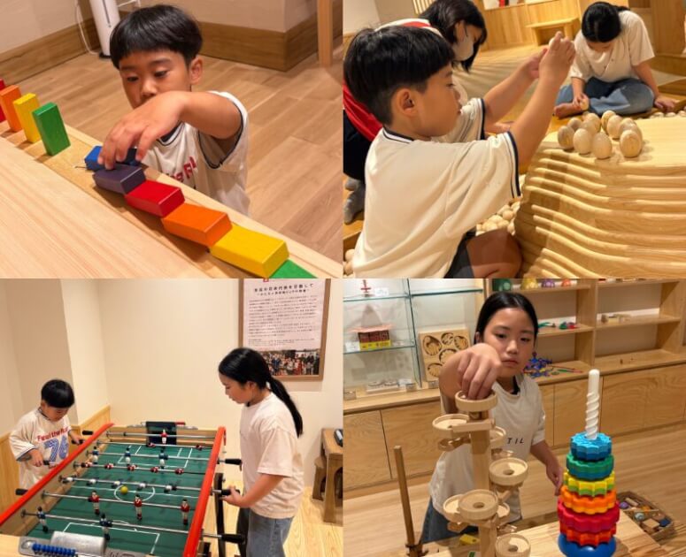 体験型の木のおもちゃコーナーがたくさん!