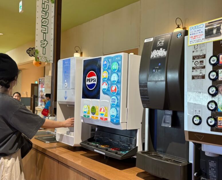 ジュースやコーヒーなど種類も多く、長時間滞在でも快適に過ごせます。