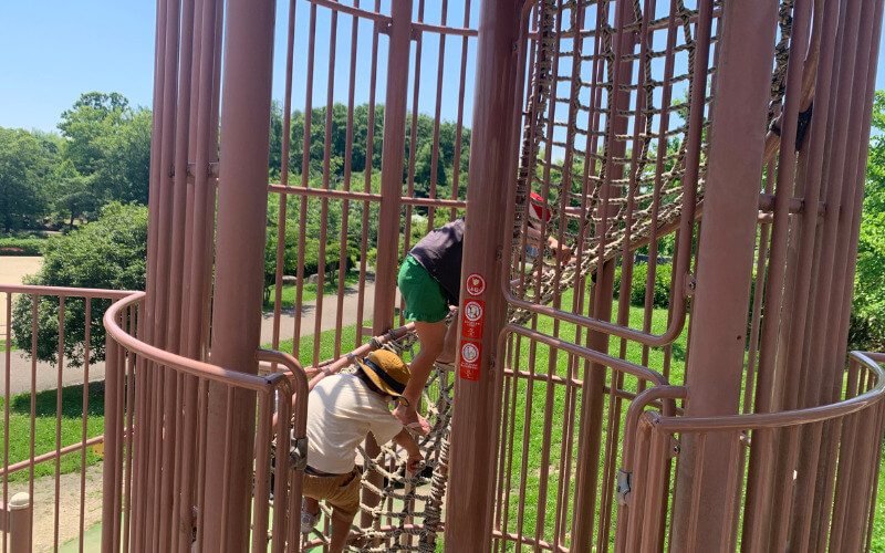 公園の中にドーンと大型複合遊具が設置、ローラーすべり台が大人気!
