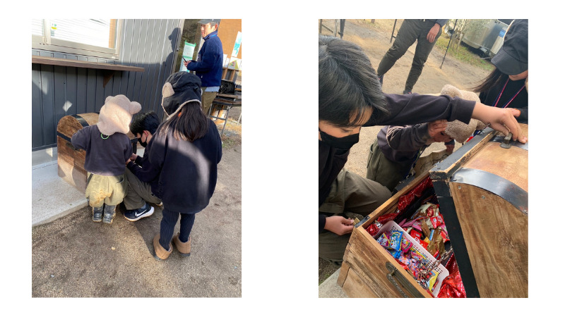 場内各所に宝箱の秘密の番号が隠されていて、全部見つければ、宝箱の鍵が開けられる仕掛け!
