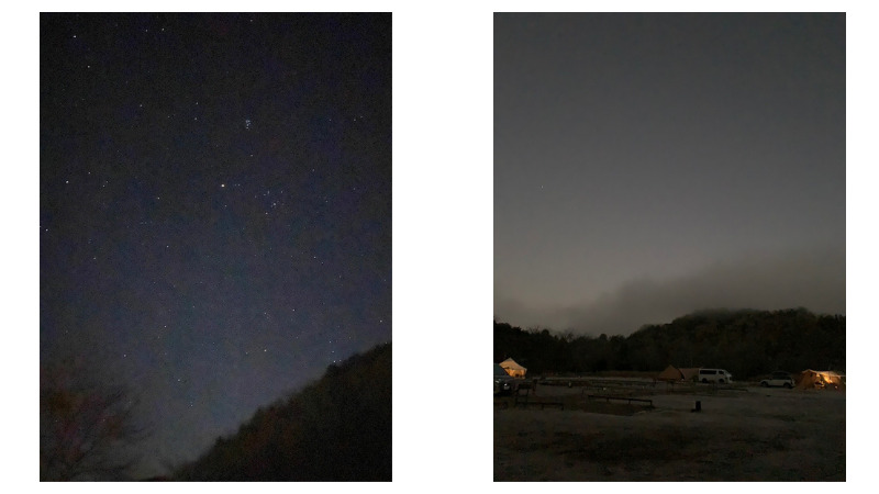 綺麗な星空は冬キャンプの醍醐味の一つですね。(写真に上手く収められず申し訳ない)