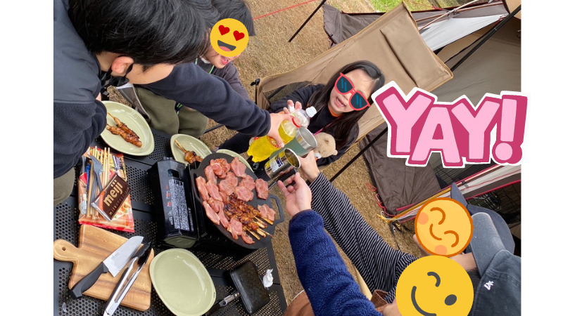 みんなでおしゃべりしたり、マシュマロ焼いたりします。